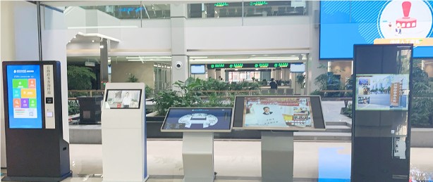 项目在各楼层大厅和休息区分别部署星际互动42寸立式政务查询终端设备和55寸壁挂液晶一体机,通过多媒体互动信息发布系统,发布各种资讯信息,实时动态楼层分布等等。