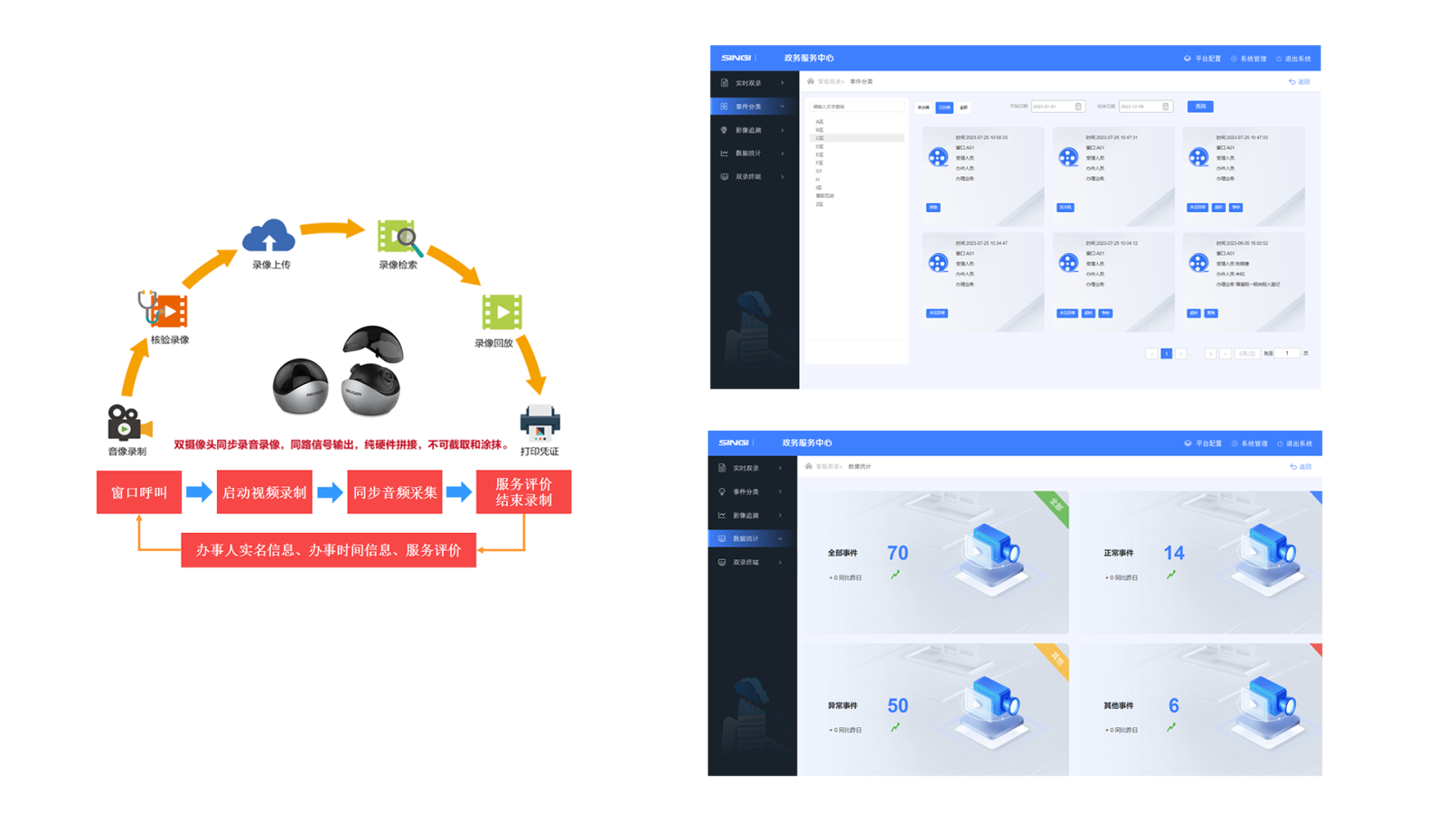在调解室集成音视频设备,全程同步录音录像并与案件信息关联,并与案件信息、当事人身份自动关联。实现过程留痕、规范可溯。支持智能识别预警,辅助维护现场秩序。