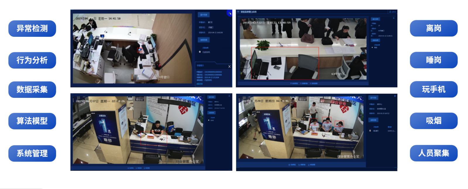 基于AI视频分析,实时识别调解员不规范行为及大厅内的冲突、聚集等风险情形,及时告警并推送管理人员,从事后处置转向事前预防。
