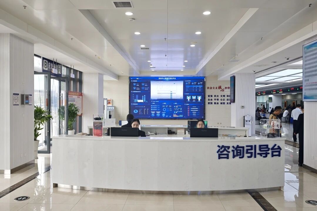 全面部署了星际互动智慧政务中枢管理平台,平台集成了数据中台、智能排队叫号、触摸查询、自助填单、智能存取、数据可视化等核心模块,通过一系列智能化、数字化的建设内容,打造智能化、集约化服务大厅,推动实现“一窗通办、一站服务”。