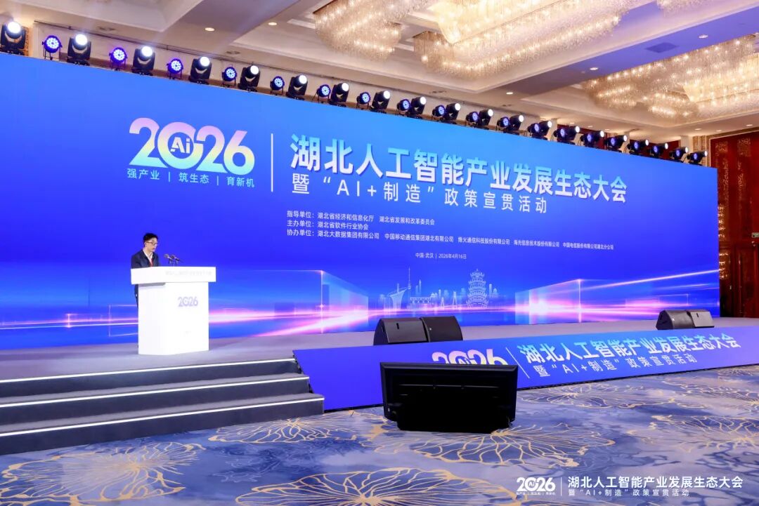 4月16日,2026湖北人工智能产业发展生态大会在武汉隆重举行。本次大会由由湖北省经济和信息化厅、湖北省发展和改革委员会指导,湖北省软件行业协会主办,汇聚了政府主管部门、行业专家、领军企业及生态合作伙伴,共话产业发展新趋势,共筑湖北AI生态协同发展新格局。